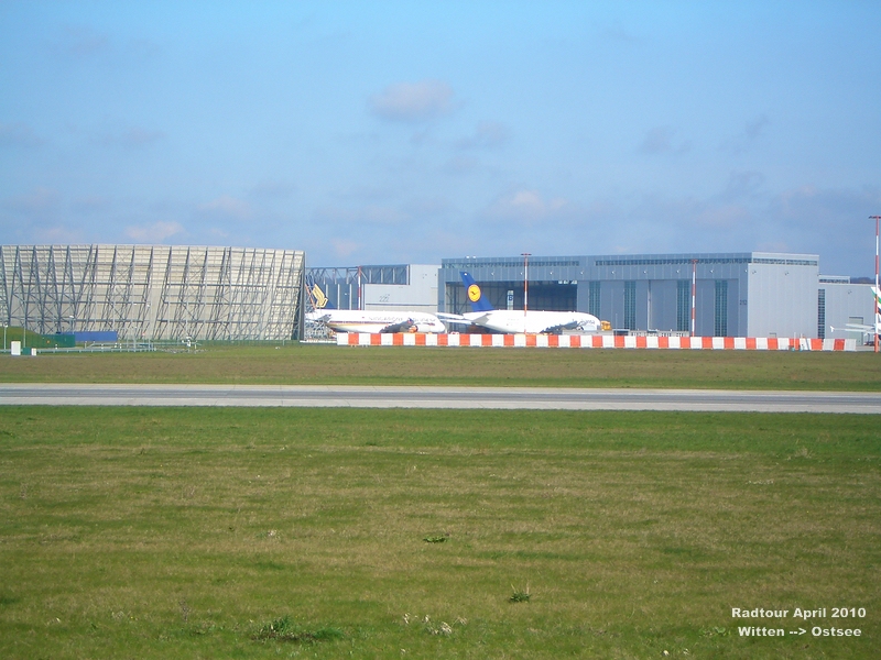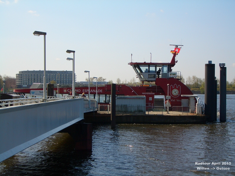 Vorbei an den technischen Bauwerken des Hafens und des Airbus-Werkes näherten wir uns der Fähranlegestelle. Mit der Fähre fuhren wir von Finkenwerder nach Teufelsbrück um dort in dem Lokal „kleine Rast“ einen Kaffee zu trinken. Dort sahen wir dann in vorderster Reihe einen Beluga starten und landen...-beeindruckend-...